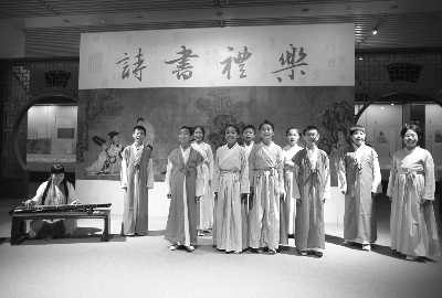 中國(guó)國(guó)家圖書館利用國(guó)家典籍博物館“從《詩(shī)經(jīng)》到《紅樓夢(mèng)》——那些年我們讀過的經(jīng)典”展覽展廳開展體驗(yàn)式教育活動(dòng),學(xué)生現(xiàn)場(chǎng)朗誦詩(shī)歌,在詩(shī)詞中感受絲綢之路的歷史變遷。 本報(bào)記者 陳 曦 攝