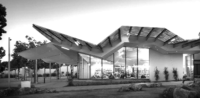 加利福尼亞州圣莫尼卡皮科分館。該館位于圣莫尼卡弗吉尼亞大街公園中,不僅提供了各種教育文化資源,還為社交提供了場(chǎng)所。該館面積近9000平方英尺,充分挖掘了各種沒(méi)有使用的空間,進(jìn)一步拓展了公園廣場(chǎng)的活動(dòng)功能。該館獲得了美國(guó)綠色建筑白金認(rèn)證,充分利用了自然采光、遮陽(yáng)等技術(shù):天窗和雕花天花板有助于最大限度地利用光線,凸顯圖書(shū)館的建筑特征;長(zhǎng)長(zhǎng)的挑檐和頂篷可以保護(hù)玻璃免受陽(yáng)光直射,并消除陰影的影響。通過(guò)雨水收集系統(tǒng),圖書(shū)館從其屋頂和相鄰建筑物的屋頂收集雨水,在過(guò)濾之后用于沖洗廁所。