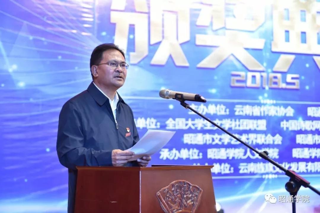 中共昭通市委常委、組織部部長陳真永,昭通市人民政府副秘書長鄒邦才、昭通市文化體育局局長施華滟、昭通市文聯(lián)主席呂亞平、昭陽區(qū)區(qū)委常委、宣傳部部長沈洋,昭通市文聯(lián)副主席艾自由,著名評論家、暨南大學文學院二級教授、國務(wù)院政府特殊津貼專家、博士生導(dǎo)師宋劍華博士,著名作家、《花城》雜志名譽主編田瑛,著名散文家、北京作家協(xié)會駐會專業(yè)作家周曉楓,著名詩人、《十月》詩歌編輯谷禾,青年評論家、中國作家出版集團團委書記、全國大學生文學社團聯(lián)盟秘書長顧超等省外專家,著名作家、云南省作家協(xié)會副主席胡性能,著名詩人、云南省作家協(xié)會副主席雷平陽,著名作家、大理大學文學院院長、云南省作家協(xié)會副主席納張元,著名作家、云南民族大學二級教授、云南文藝評論家協(xié)會副主席李騫等省內(nèi)專家學者,昭通作家和學校黨政領(lǐng)導(dǎo)出席此次頒獎典禮。