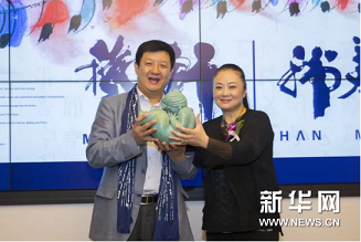 韓美林藝術(shù)館館長(zhǎng)、韓美林藝術(shù)基金會(huì)秘書長(zhǎng)周建萍將韓美林青銅雕塑《母與子》贈(zèng)予永新華控股集團(tuán)主席李永軍