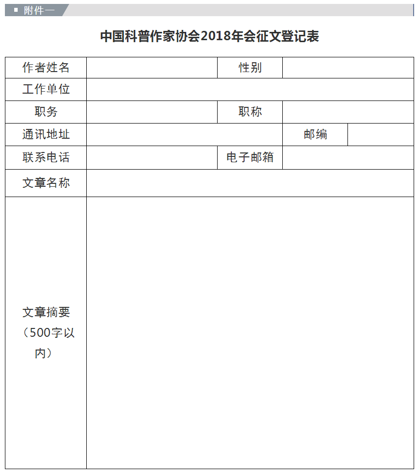 附件1:中國科普作家協(xié)會2018年會征文登記表