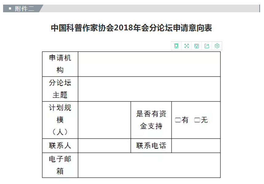 附件2:中國科普作家協(xié)會2018年會分論壇申請意向表