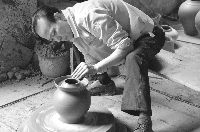 陶器越小,制作難度越大,但在梁先才那里不算什么難事。一個高不到5厘米、最大直徑僅2厘米的泡菜壇,他在10分鐘以內(nèi)便可一氣呵成?!靶夼鲿r要講究精細度,制作時除了要有嫻熟的拉坯經(jīng)驗,更要耐心細致,如果有一點兒分心或馬虎,整個作品可能就作廢了?!绷合炔耪f。