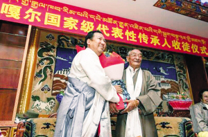 班典旺久說,2001年起,他利用業(yè)余時間向平措玉杰、扎西次仁學習嘎爾相關(guān)知識。此次拜師將進一步學習老一輩西藏藝術(shù)家的精神,做好嘎爾的傳承工作。