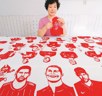 日前,河北省邯鄲市民間剪紙藝人馮石萍利用兩周時(shí)間,創(chuàng)作出以梅西、C羅、內(nèi)馬爾等球星為原型的剪紙作品,迎接世界杯的到來(lái)。