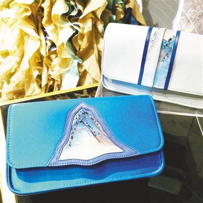 日前,非遺傳承人群研培計劃優(yōu)秀成果展舉行,圖為學員制作的“千里江山挎包”。 本報記者 鄭海鷗攝