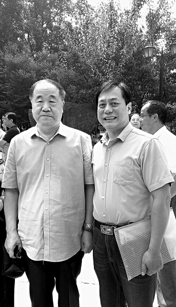 在魯迅文學(xué)院舉行的開學(xué)典禮上,作者與著名作家莫言(左)合影