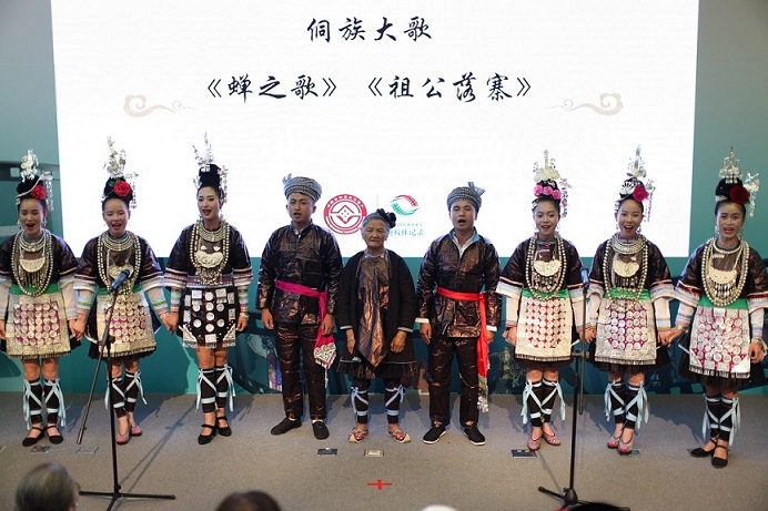 幾位國(guó)家級(jí)非遺傳承人的到來(lái)令活動(dòng)精彩紛呈,潘薩銀花和小黃侗歌隊(duì)演唱了侗族大歌《蟬之歌》和《祖公落寨》;巴德瑪深情地演唱了蒙古族長(zhǎng)調(diào)民歌《北邊的山梁》;牛玉亮為觀(guān)眾帶來(lái)《綠水春山.百鳥(niǎo)爭(zhēng)鳴》,展示了口技的絕活;秦夢(mèng)雨和徒弟把昌黎地秧歌鮮明的舞蹈風(fēng)格展現(xiàn)得淋漓盡致;90歲高齡的沈少三讓徒弟們展示了撂石鎖的武術(shù)功力。