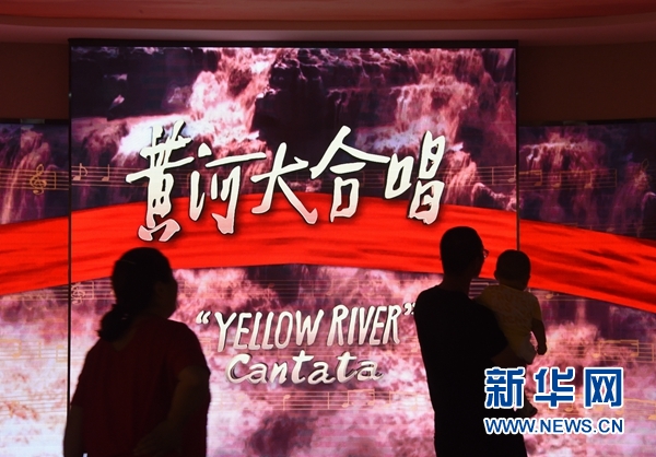 7月7日,觀眾在聆聽展覽現(xiàn)場(chǎng)播放的《黃河大合唱》。