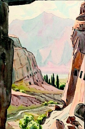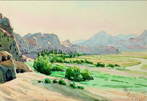 克孜爾全景(水彩) 韓樂(lè)然作