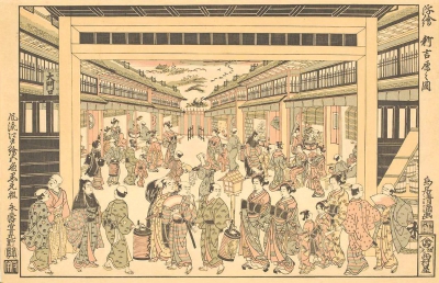 新吉原之圖(鳥居清滿浮繪)29.5×44.5cm大倍版紅摺繪18世紀(jì)中期私人藏