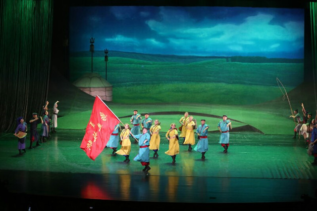 開幕式上,內(nèi)蒙古自治區(qū)直屬烏蘭牧騎及全區(qū)各烏蘭牧騎優(yōu)秀隊員們?yōu)榘朔絹碣e和首府各族各界群眾獻上了一場精彩的民族歌舞《草原上的烏蘭牧騎》。民族歌舞《草原上的烏蘭牧騎》深入挖掘和集中體現(xiàn)了烏蘭牧騎精神及其社會作用,把烏蘭牧騎熱愛敬重農(nóng)牧民和各族群眾,植根基層心貼心地為人民服務(wù),普及社會主義文化,傳承民族優(yōu)秀藝術(shù),促進經(jīng)濟社會發(fā)展,增強民族團結(jié)進步,維護邊疆和諧穩(wěn)定,打造祖國北疆亮麗風(fēng)景線,為實現(xiàn)中華民族偉大復(fù)興的“中國夢”而奮發(fā)努力的光輝歷程展示在了舞臺上,突出烏蘭牧騎的人民性、時代性和在文藝戰(zhàn)線的引領(lǐng)性。將民族歌舞《草原上的烏蘭牧騎》選作第八屆中國·呼和浩特少數(shù)民族文化旅游藝術(shù)活動開幕式文藝演出劇目,是深入貫徹落實習(xí)近平總書記給蘇尼特右旗烏蘭牧騎隊員們回信精神的具體舉措,是宣傳弘揚烏蘭牧騎精神的有益做法,演出引起了全場觀眾的共鳴,取得了良好的效果。