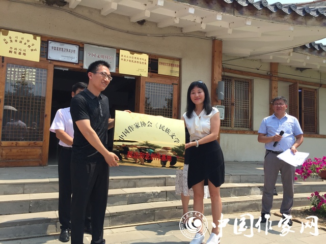 活動期間,舉行了《民族文學(xué)》延邊和龍創(chuàng)作基地授牌儀式,《民族文學(xué)》主編石一寧、副主編陳亞軍授牌,延邊作協(xié)常務(wù)副主席鄭風(fēng)淑、和龍市副市長邢偉接牌。
