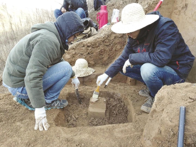 科研人員發(fā)現(xiàn)一件石器,正用刷子清潔其表面。該石器埋藏在第28層黃土中,年代為212萬年。(均朱照宇供圖)