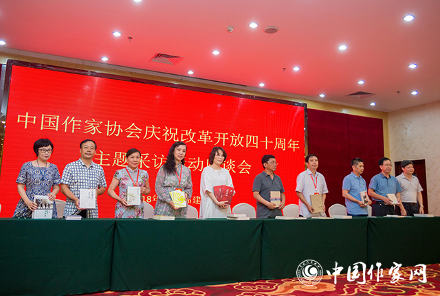 活動(dòng)期間,采訪團(tuán)還舉辦了座談會(huì)。四川省作協(xié)主席、采訪團(tuán)副團(tuán)長阿來從張承志的《石頭的勝利》談起,回顧了海上絲綢之路的歷史,談及泉州的文化基因和自己對(duì)文化發(fā)展的思考。他談到,新時(shí)代讓中國文學(xué)又迎來了開放的年代,中國文學(xué)還有很長的路要走。作家們需要有新的視角、新的感受、新的技巧與審美,期待對(duì)時(shí)代負(fù)責(zé)任的寫作者可以創(chuàng)作出更多有分量的現(xiàn)實(shí)題材作品。河北省灤南縣作協(xié)主席韓進(jìn)勇表示,作為一名基層作家,非常感謝有這樣的采訪機(jī)會(huì),可以使自己開闊視野,深切感受到改革開放40年來取得的豐碩成果。中國作協(xié)創(chuàng)聯(lián)部副主任、采訪團(tuán)副團(tuán)長包宏烈表示,這次采訪活動(dòng)既是豐富的社會(huì)實(shí)踐,也是深入的國情調(diào)研。作為在場(chǎng)者和見證者,大家學(xué)到了真經(jīng),得到了真?zhèn)?,獲取了寶貴而豐沛的創(chuàng)作資源,一定能在日后的寫作之路上創(chuàng)作出更多反映時(shí)代精神、展現(xiàn)人民奮斗、振奮民族精神的優(yōu)秀作品。福建省文聯(lián)副主席陳毅達(dá)表示,這次采訪對(duì)于福建省作家來說是一次難得的學(xué)習(xí)機(jī)會(huì)。福建作為改革開放的前沿地區(qū),蘊(yùn)含豐富的創(chuàng)作資源,文學(xué)的創(chuàng)作必須緊貼時(shí)代、社會(huì)、現(xiàn)實(shí)。采訪團(tuán)的其他作家也在發(fā)言中表示,此次采訪進(jìn)一步增強(qiáng)了自己對(duì)改革開放成就的感知與認(rèn)識(shí),下一步,將更加自覺地肩負(fù)起歷史責(zé)任和時(shí)代使命,堅(jiān)持以人民為中心的創(chuàng)作導(dǎo)向,加強(qiáng)現(xiàn)實(shí)題材創(chuàng)作,不斷推出有思想、有溫度、有筋骨的佳作。福建省文聯(lián)副主席、省作協(xié)主席楊少衡主持座談會(huì)。座談會(huì)上還舉辦了贈(zèng)書儀式,采訪團(tuán)作家們向廈門市文聯(lián)、廈門市作協(xié)捐贈(zèng)了自己的作品。