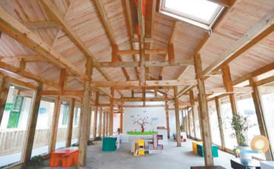 純化鄉(xiāng)村景觀風(fēng)貌的設(shè)計,不僅僅體現(xiàn)在民居和一些小體量公共建筑的改造,對于鄉(xiāng)村傳統(tǒng)建筑形態(tài)的尊重,也體現(xiàn)在如小學(xué)這樣具有標(biāo)志性意義的公共建筑的創(chuàng)新性形式設(shè)計,使得整體鄉(xiāng)村景觀風(fēng)貌呈現(xiàn)出統(tǒng)一中的變化、純化中的創(chuàng)新。