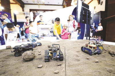 月球車模型在模擬的月球上進(jìn)行科學(xué)測試。本報(bào)記者袁婧攝