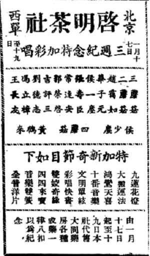 啟明茶社廣告,選自《游藝畫(huà)刊》