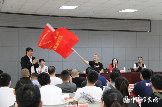 黃鶴向網(wǎng)絡(luò)作家蘇小蘇授開班旗