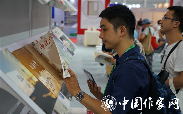 讀者在“中國作家出版集團館”閱讀文學期刊