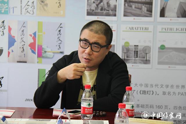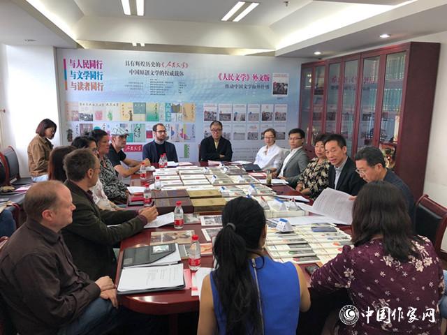 9月29日,參加魯迅文學(xué)院“2018國際寫作計(jì)劃”的外國作家來到中國作家出版集團(tuán),參加由魯迅文學(xué)院和人民文學(xué)雜志社共同主辦的“文學(xué):中國聲音與世界表達(dá)”中外作家交流研討會(huì)?!度嗣裎膶W(xué)》雜志主編施戰(zhàn)軍主持研討會(huì),《人民文學(xué)》雜志副主編徐坤,青年作家石一楓、陳楸帆等參加研討。