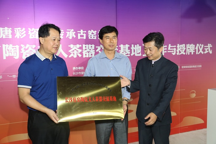9月28日上午,在古色古鄉(xiāng)的銅官古街府窯陶瓷文創(chuàng)基地,探尋大唐彩瓷?傳承古窯技藝“銅官陶瓷文人茶器交流基地”創(chuàng)作與授牌儀式在此舉行,中國(guó)少數(shù)民族作家學(xué)會(huì)秘書(shū)長(zhǎng)趙晏彪和望城區(qū)委宣傳部副部長(zhǎng)李宏向長(zhǎng)沙府窯陶瓷藝術(shù)有限公司總經(jīng)理吳琪授牌。