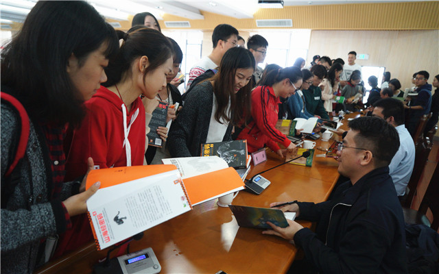 分享結(jié)束后,五位作家還接受了同學(xué)的提問,并為大家簽名。(陳澤宇 文/攝)