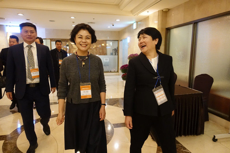 論壇休息時,鐵凝與韓國漢學家樸宰雨等交流