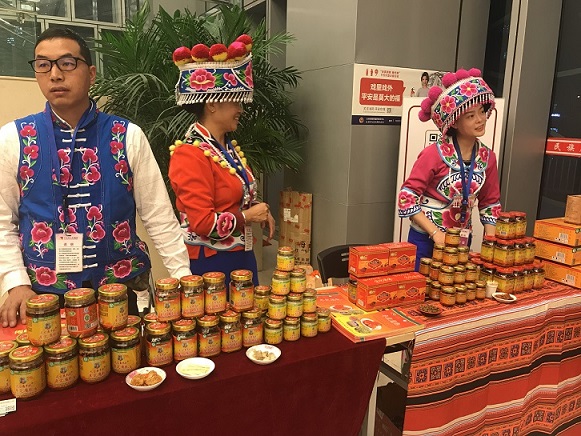 此次楚雄州民族藝術(shù)劇院給首都觀眾帶來了原汁原味、美輪美奐的民族歌舞表演,而在民族劇院的前廳,部分彝繡和農(nóng)特產(chǎn)品企業(yè)在現(xiàn)場展示各自的特色產(chǎn)品,引來觀眾爭相購買……