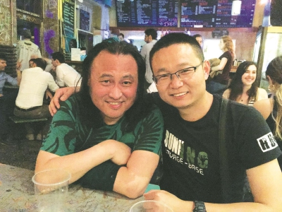 余澤民(左)和本文作者在廢墟酒吧合影。