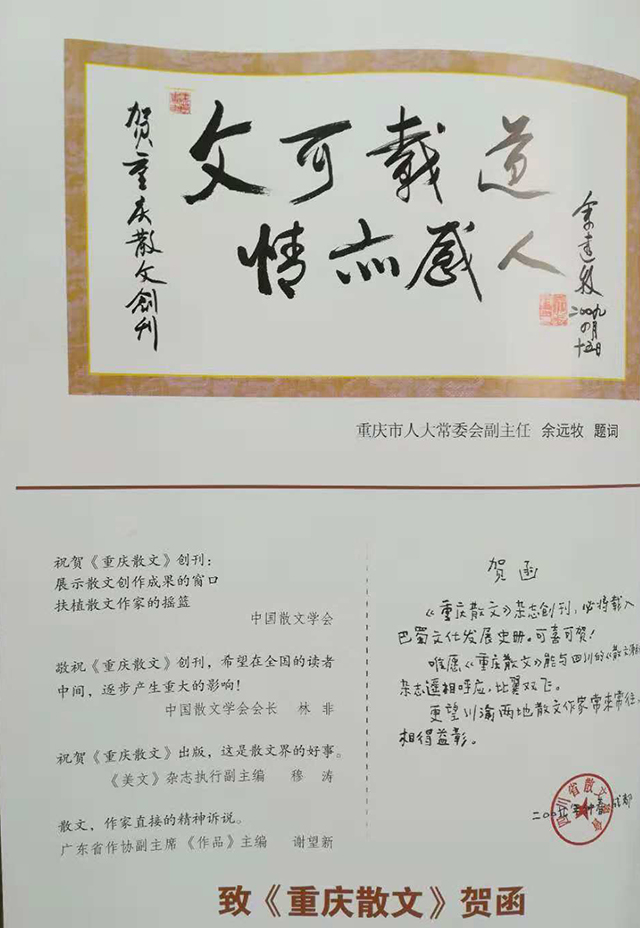 《重慶散文》系重慶市散文學(xué)會主辦,2009年創(chuàng)刊,季刊,目前已出版27期,開辟了“美文”“品鑒”“巴渝”“情感”“萍蹤”“流年”“校園”“軍苑”“燈下”“初荷”等欄目。