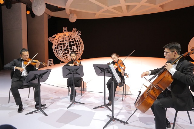 在大劇院公共空間,精心為觀眾準(zhǔn)備了各種“邂逅”藝術(shù)的驚喜。北水下廊道,《唐璜》《羅密歐與朱麗葉》等劇中人,身著戲服,頻頻與觀眾互動(dòng)。北玻璃幕墻下,整點(diǎn)奏響《節(jié)日序曲》《凱旋進(jìn)行曲》報(bào)時(shí)。原創(chuàng)舞劇《天路》中的演員帶來的舞蹈快閃,更是將氣氛推向高潮。南玻璃幕墻下《國家大劇院》雜志的展示區(qū)別具特色。至今已發(fā)行126期的《國家大劇院》雜志用藝術(shù)故事和名家名團(tuán)集萃陪伴公眾。不少觀眾在互動(dòng)專區(qū)拍起了“創(chuàng)意紀(jì)念照”,成為《國家大劇院》雜志的“封面人物”。西咖啡廳中,藝術(shù)家在全天5個(gè)時(shí)段近距離為觀眾演奏《匈牙利舞曲》《小步舞曲》《梁?!贰恫试谱吩隆贰赌夏酁场贰顿愸R》等耳熟能詳?shù)那?。戲劇場入口,北方昆曲劇院的演員為大家演繹《牡丹亭》《貴妃醉酒》等昆曲與京劇名段。