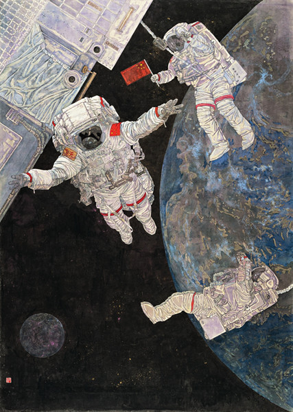 毛珠明《中國夢——飛天》,2016,151×214cm,中國畫,紙本,國家藝術(shù)基金青年藝術(shù)創(chuàng)作人才(美術(shù)類)滾動資助作品