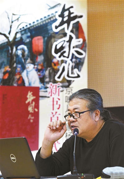《年味兒》是著名“京味畫家”楊信介紹以北京為主的中國傳統(tǒng)節(jié)日——春節(jié)的一本圖文并茂的傳統(tǒng)文化普及讀物。復(fù)原了傳統(tǒng)春節(jié)文化。糖瓜祭灶、新年來到,清掃屋塵、貼窗花、掛年畫、寫春聯(lián)、蒸年糕……在楊信的畫筆下,這些傳統(tǒng)習(xí)俗活靈活現(xiàn)地展現(xiàn)出來。楊信是土生土長的北京人,活動現(xiàn)場,在他京味兒十足的講述中,春節(jié)里的京味兒撲面而來。記者了解到,畫家楊信多年來對北京胡同人文歷史進(jìn)行深入研究,潛心致力于舊京民俗文化藝術(shù)的挖掘和整理,創(chuàng)作了大量京味兒民俗題材的繪畫作品,先后出版數(shù)十部作品集。也正是這樣的積淀,讓這本《年味兒》透露著濃濃的生活氣息。攝影/本報記者 王曉溪
