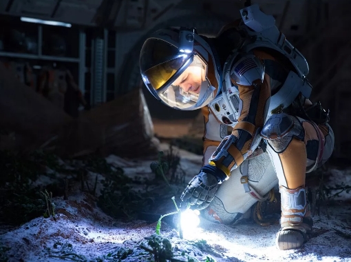這不禁令人想起《鋼鐵蒼穹》《月球》《阿波羅18號(hào)》等以月球?yàn)楸尘暗目苹秒娪?,而月球種土豆的情節(jié)同樣出現(xiàn)在《火星救援》中。昨日之科幻,今日之現(xiàn)實(shí),現(xiàn)實(shí)與科幻的距離亦不過一墻之隔。