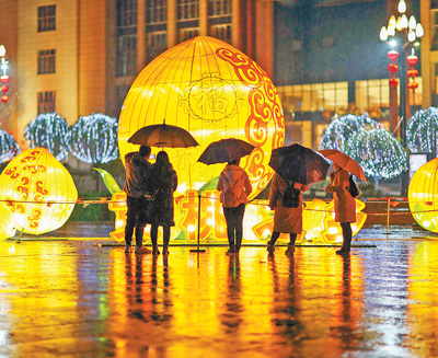 1月30日,人們?cè)谫F州省銅仁市玉屏侗族自治縣舞陽(yáng)廣場(chǎng)上觀賞春節(jié)彩燈。 胡攀學(xué)攝(新華社發(fā))