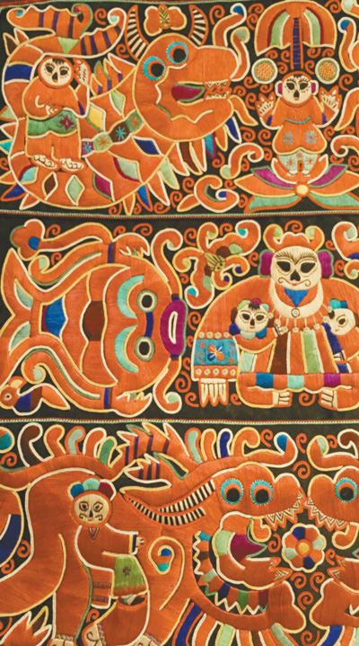 中國(guó)的四大名繡早已名揚(yáng)海內(nèi)外,精致、雅潔、詩(shī)情畫(huà)意;苗繡則不然,它以神秘的氣息、樸拙的造型甚至有些萌萌的幽默,一下子開(kāi)拓了我們的審美視野。