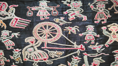 苗繡是苗族人的文化讀本。從啟蒙開(kāi)始,苗族人就可以從苗繡里學(xué)習(xí)生活常識(shí),認(rèn)識(shí)草木動(dòng)物,學(xué)習(xí)紡線(xiàn)耕田,了解節(jié)日習(xí)俗……包括對(duì)神話(huà)、對(duì)宇宙天體的解讀,林林總總無(wú)所不有。乍一看這本“書(shū)”,羅列的事物真不少,率性隨意,缺乏歸納,但如果仔細(xì)閱讀你便會(huì)發(fā)現(xiàn),它所表現(xiàn)的內(nèi)容也都是經(jīng)過(guò)了嚴(yán)格選擇的,而且不乏思想深度。苗族先人把祖祖輩輩獲得的人生智慧,都隱藏在一個(gè)個(gè)生動(dòng)鮮活的苗繡故事中。