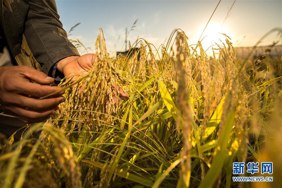 在吉林省舒蘭市平安鎮(zhèn),農(nóng)民在稻田間觀察稻穗灌漿情況(2018年9月18日攝)。 新華社記者 許暢 攝