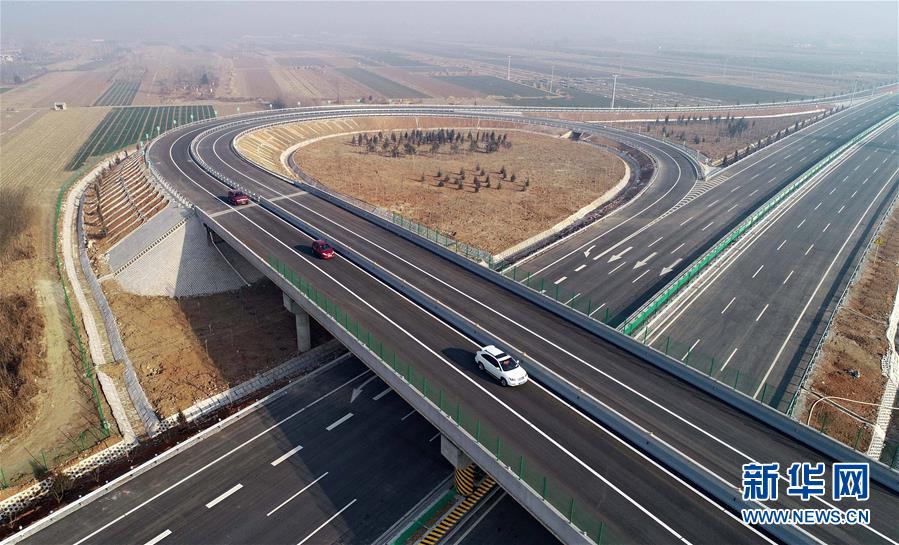 2018年12月16日無人機拍攝的京秦高速公路二期工程河北玉田西進出口處的立交橋。新華社記者 楊世堯 攝