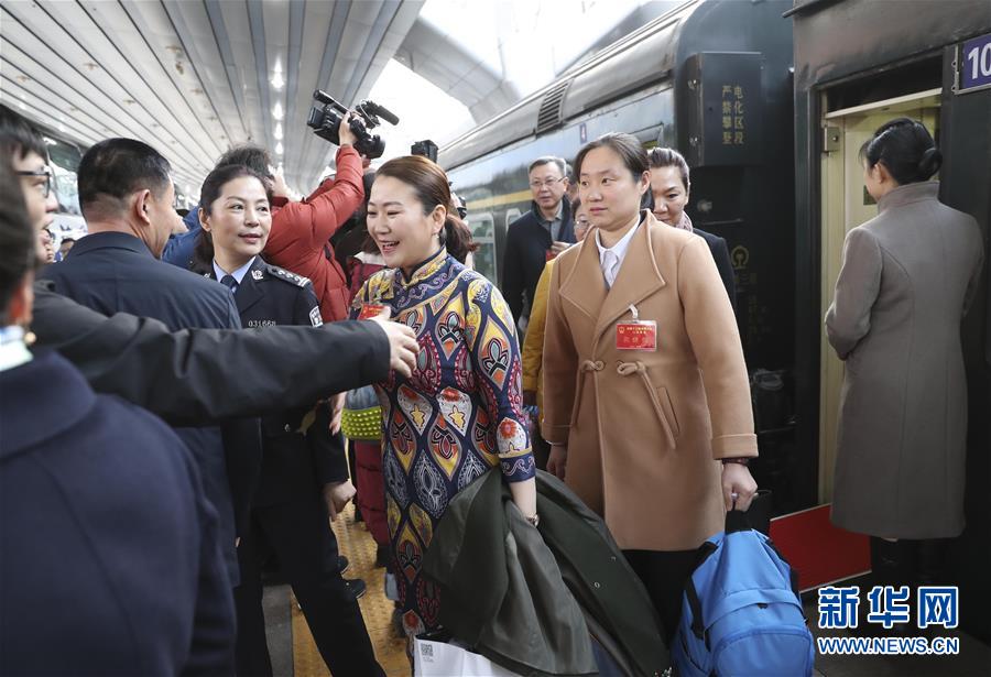 3月2日早晨,來(lái)自黑龍江省的全國(guó)人大代表乘坐火車抵達(dá)北京站。新華社記者 殷剛 攝
