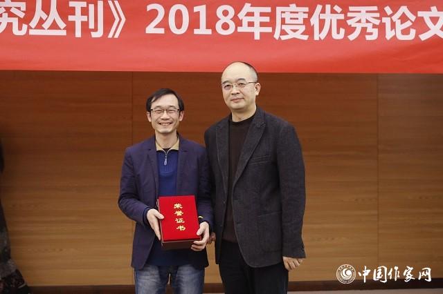 吳義勤為獲獎者黃德海頒獎