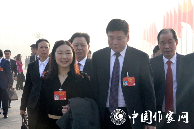 蔣勝男代表(左)等步入人民大會堂
