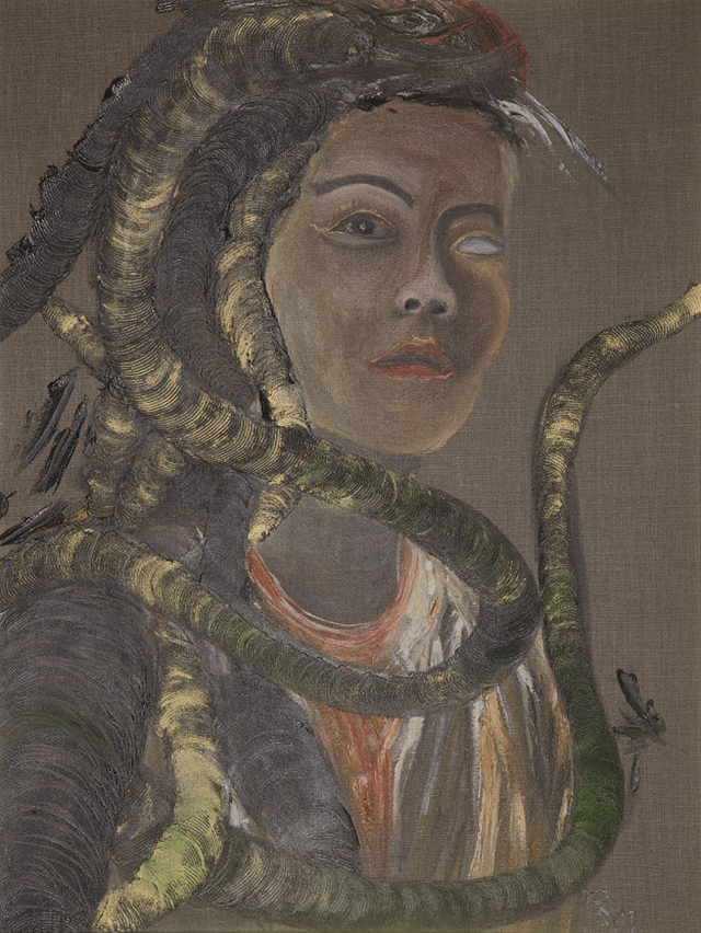 吉狄馬加在開幕式上說,在這個時代,我們看到,藝術(shù)的邊界越來越模糊,而跨界進行創(chuàng)作的人越來越多。一個人的創(chuàng)造可以是多方面的,他(她)既是一個詩人,又是一個畫家,還可能同時是一個書法家。我們之前更多地認識了金鈴子的詩人身份,而這次展覽非常集中地呈現(xiàn)了畫家金鈴子的創(chuàng)作成果。她的繪畫和她的詩歌一樣充滿了想象力。詩歌帶給我們的是精妙語言、修辭及其背后的復雜隱喻,而繪畫通過色彩、線條提供給我們豐富的藝術(shù)感受。從這些繪畫作品中,我們看到了畫家對于生命、創(chuàng)造和死亡等命題的深入思考,看到了她把創(chuàng)造力發(fā)揮到極致之后帶來的藝術(shù)驚喜。