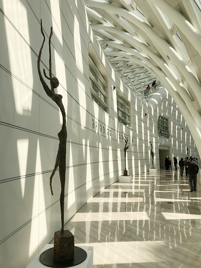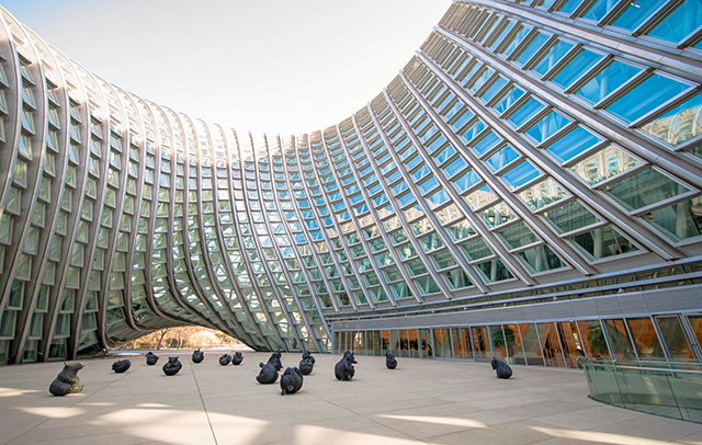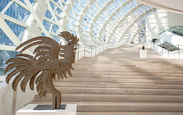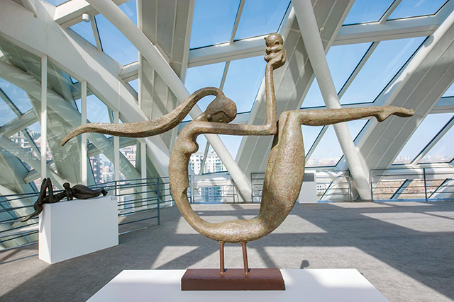 位于北京東三環(huán)附近的鳳凰中心擁有獨(dú)特的建筑風(fēng)格,其造型創(chuàng)意來(lái)源于莫比烏斯環(huán),空間與文化在拓?fù)涞囊饬x上被連接了起來(lái),所形成的連續(xù)整體感與錯(cuò)落交織的層次及環(huán)形結(jié)構(gòu),象征著鳳凰本身的特征屬性,展現(xiàn)包容與開(kāi)放的藝術(shù)風(fēng)格。作為鳳凰衛(wèi)視2019年的年度大展,“美無(wú)止境——韓美林的雕塑世界”作品展在此舉辦,暗合著一段藝術(shù)精品與建筑佳作的奇妙緣分。主辦方表示,該展覽冀望以建筑的無(wú)限性來(lái)回應(yīng)韓美林藝術(shù)生命之永恒,詮釋了建筑、雕塑與心靈之間不可分割的因緣。通過(guò)這些作品的展示,當(dāng)代藝術(shù)與現(xiàn)代建筑實(shí)現(xiàn)了完美融合,更加展現(xiàn)出強(qiáng)烈的視覺(jué)張力。二者的結(jié)合相映成輝,仿佛構(gòu)成了一幅穿越時(shí)空、超越地域、在交融中創(chuàng)造著無(wú)限未來(lái)的美妙畫(huà)作。