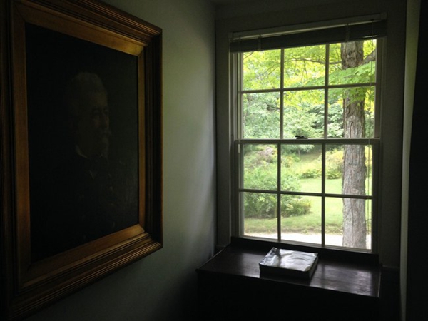 房子有淺色的墻壁,深色的木頭、橫梁、傾斜的天花板、舒適的小角落。樓上有一件小房間,里面有一張嵌壁式長(zhǎng)椅,是奧古斯都的孫女卡洛塔·圣-高登斯曾經(jīng)住過的鄉(xiāng)村小屋的一部分。塞林格從她那里買下這所房子,并有所擴(kuò)建。在一條短短的走廊里,掛著加斯·威廉斯為威爾伯畫的插畫。(昨天,我重讀了有插畫的那部分內(nèi)文,看到威爾伯在哭,因?yàn)槟侵焕涎虬l(fā)牢騷,說他就要被宰了——豬就是這樣。在哈利的家中,威爾伯和其他任何可愛的角色都不會(huì)有這樣的命運(yùn)。)