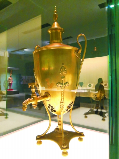 隨著茶葉進(jìn)入俄羅斯,一些重要的飲茶習(xí)俗也隨之出現(xiàn)。請看這兩只俄羅斯的茶壺,與中國傳統(tǒng)概念中的茶壺相比,實在可謂“巨大”,而且樣子也不同。注意到了嗎?它們的下端都有一個籠頭,與咱們常見的飲水機相似。俄羅斯人就是在這種特殊的茶壺中用開水沖泡茶葉。