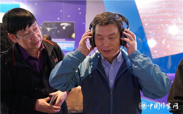 采訪團成員鐘法權(quán)在平塘國際天文體驗館聆聽來自宇宙的聲音