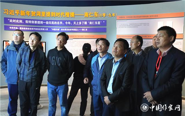 “人類之所以脫穎而出,從低等的生命演化成現(xiàn)代這樣,出現(xiàn)了文明,就是有一種對未知探索的精神?!倍嗄陙?,總設計師南仁東為龐大的“中國天眼”項目付出了巨大的努力,但他本人卻在望遠鏡落成啟用不久后因病去世。2018年12月18日,黨中央、國務院授予南仁東同志改革先鋒稱號,頒授改革先鋒獎章。采訪團走進“時代楷?!煅劬藿衬先蕱|事跡展”,學習南仁東的先進事跡,對他致以穿越星空的哀思?!俺掷m(xù)二十多年的勘測設計,他堅毅執(zhí)著,嚴謹求實,最后為科學、為國家奉獻了自己的生命,這是何等的愛國精神!”關(guān)仁山談到,一個國家,一個民族,不能沒有精神,不能沒有靈魂,不能沒有英雄。南仁東就是我們身邊的英雄,新時代的楷模。采訪團成員認為,在新時代作家要勇于書寫英雄,走進生產(chǎn)生活的現(xiàn)場,發(fā)掘日常生活中的英雄故事,捕捉創(chuàng)作靈感,深刻反映時代巨變,用自己手里的筆為新時代畫像。