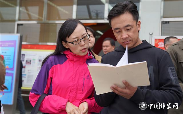 采訪團成員孫頻、索南才讓認真研讀相關(guān)資料